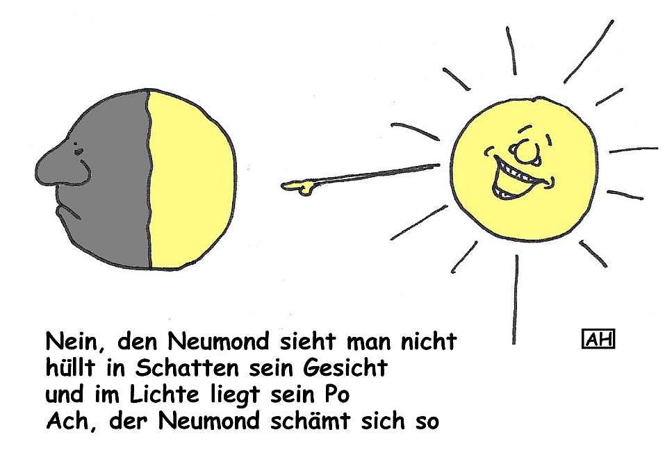 Nur das mit dem Sonneverfinstern, ich glaub da liegst du falsch. Meinen Informationen nach findet Mond Sonnenfinsternisse und Neumonde ziemlich peinlich.