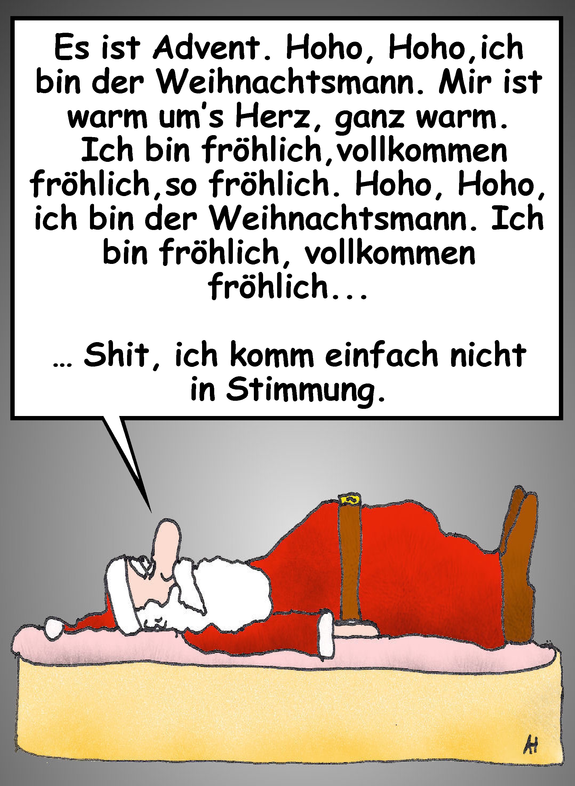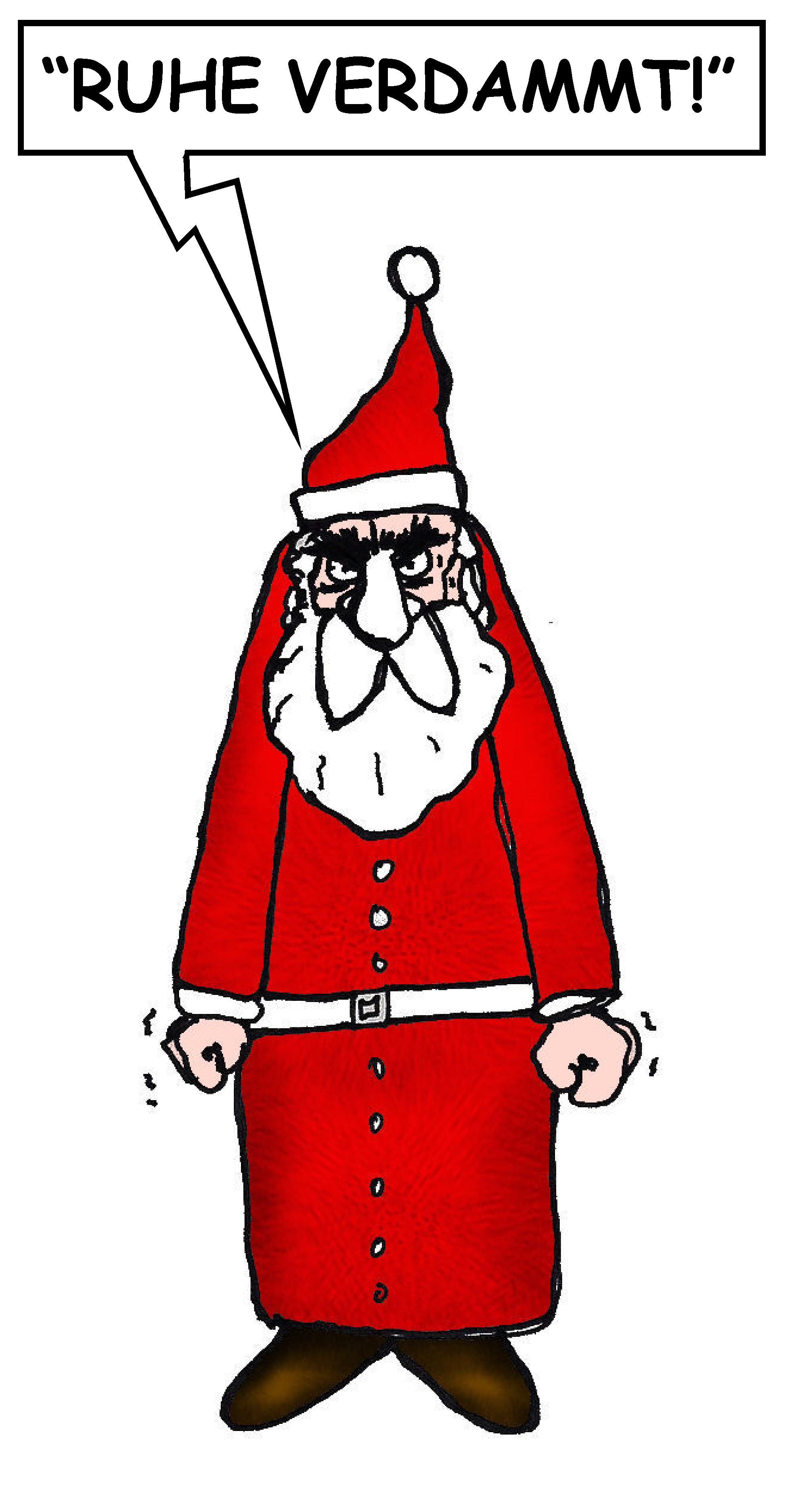 „So ein Unsinn“ grummelt der Weihnachtsmann.“…fröhlich, fröhlich, fröhlich …“