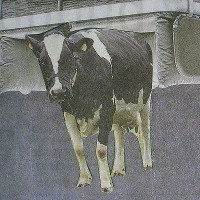 Die dumme Kuh liegt ja immer noch so steif auf dem Rücken. Ist sie betäubt? Nimmt sie Drogen? Wer versteckt sich in den Stiefeln? Wohin führt die abgedichtete Tür? In die Arche Noah? Ist die Kuh übrig, weil sie die zweite war? Eine Dreiecksbeziehung? Fragen über Fragen? Das sind die großen Fragen zu Fragen der Zeit!